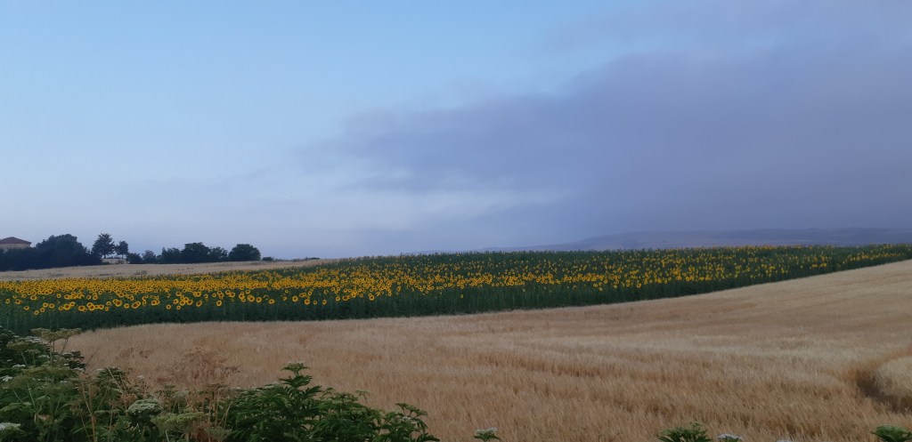 I am lost without my intellect. In the heat I find it difficult to focus and arrange myself. Organising accommodation and my pack are an effort. This is a solo adventure for the young. I am only relaxed when walking, and even then harassesd by thinking ‘where will I pee?’ – keeping hydrated means constantly peeing! And one feels obliged to buy something at each place – it costs more than a penny to spend a penny… I left my Hoka trainers in the youth hostel. I hate them. Wide flat bottomed trainers for lazy people and lazy walking. They are a symbol of all the disorganisation of this trip!